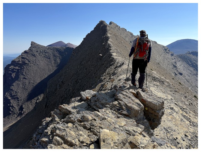 to the summit: an exposed class 3 route along the ridge and a class 2 route