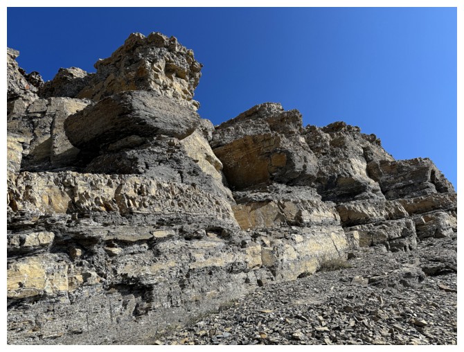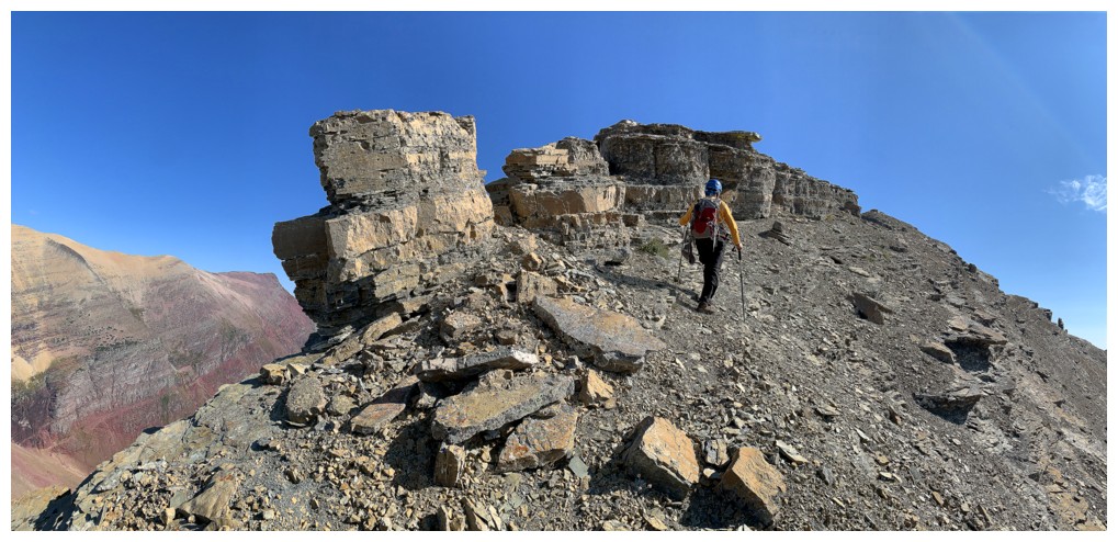 The rock of the ridge from below. We stayed below the ridge for most of the remainder of the ascent.