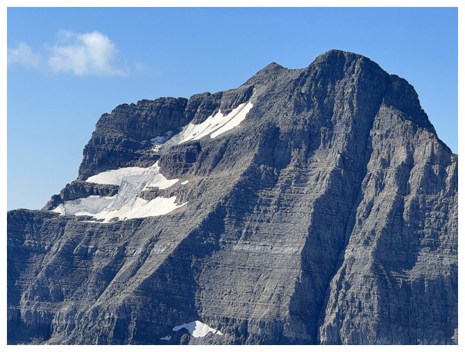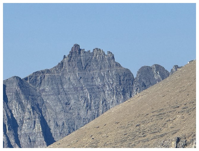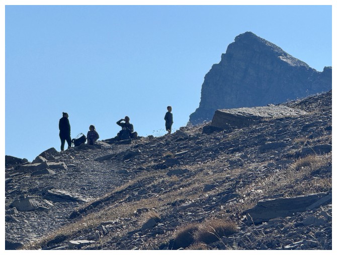 Zoomed-in photo of a few hikers and Siyeh Pass Peak (although we did not know it was SPP at the time)