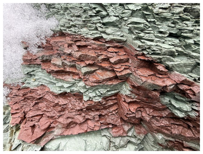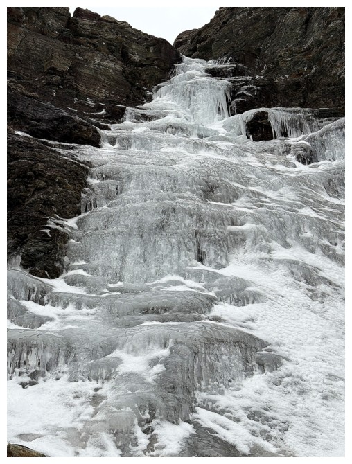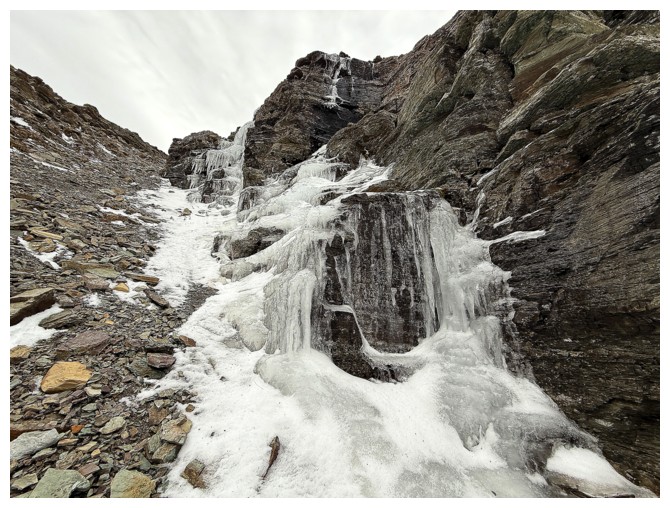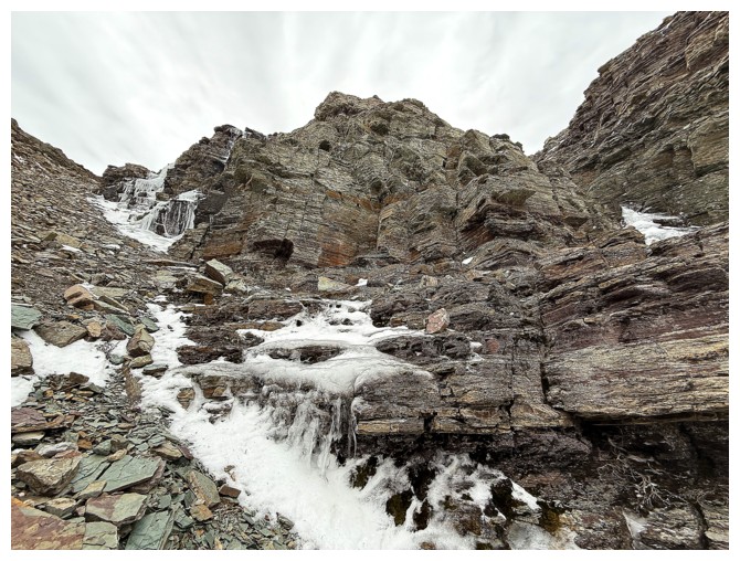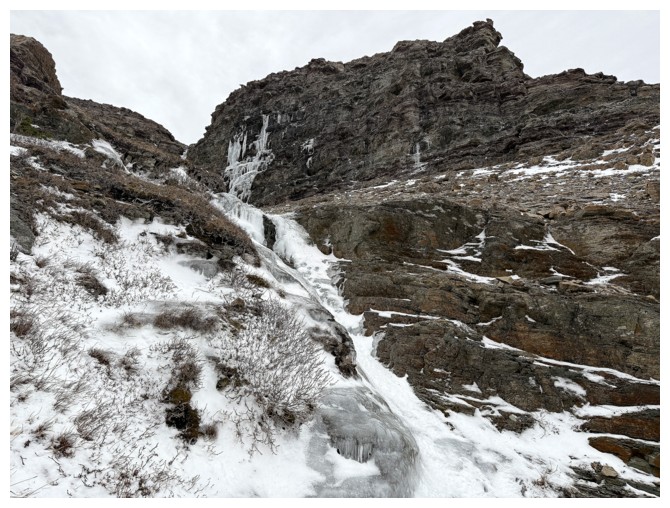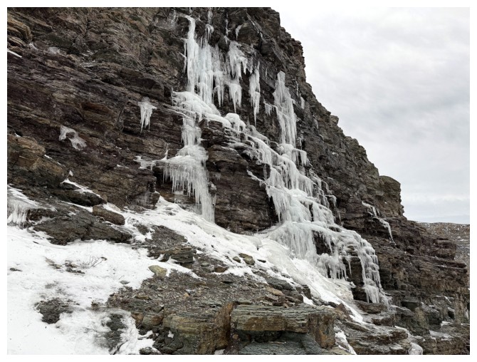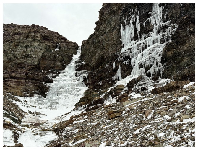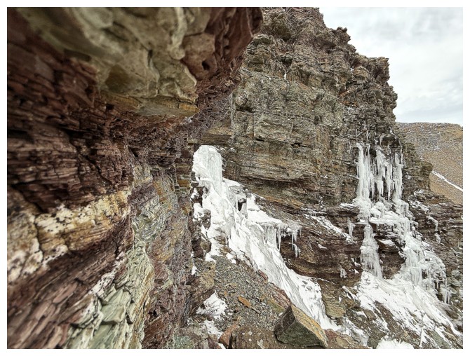 Minor detour to check out the frozen waterfall and a section of extraordinary rock