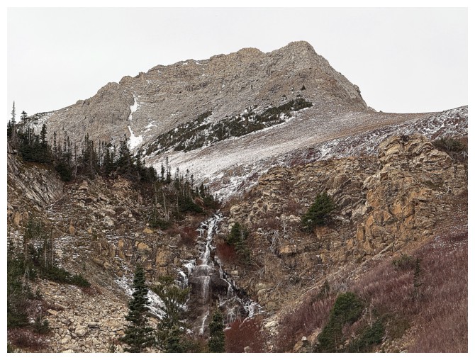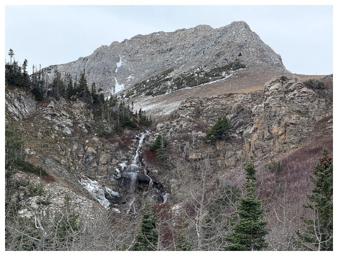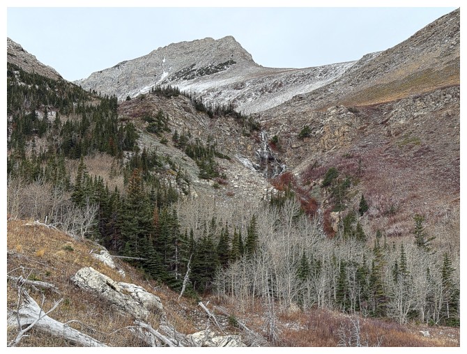 Passing by the waterfall, with the first route I took up Sofa with Jodi many years ago, in the background