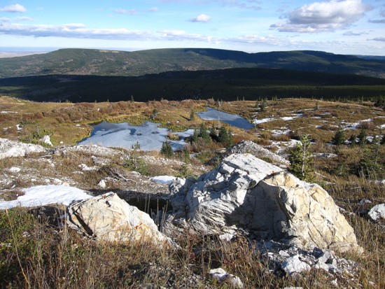 Although the route to the base of the mountain appeared to be straightforward from the road, it turned out to be far from easy. First, there was the swampy marshes near the road, followed by a short but very nasty bushwhack through dense alders, and endless trudging over unseen hills to finish it off.