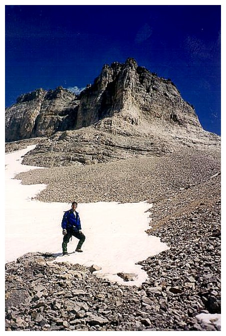 The impressive west side of the summit block