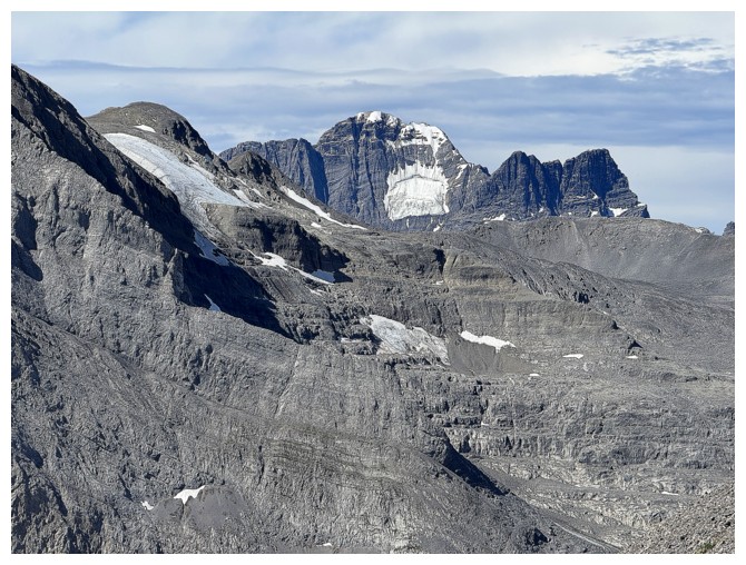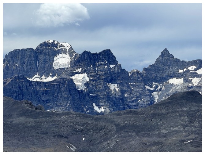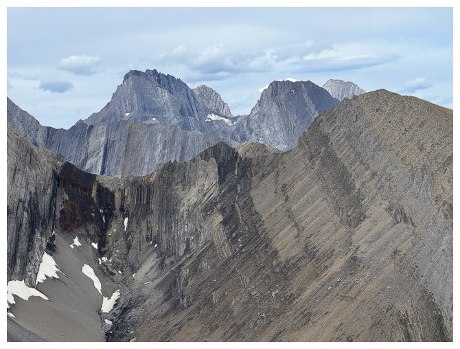 Assiniboine and company again and the steep strata of Three Isle's west face
