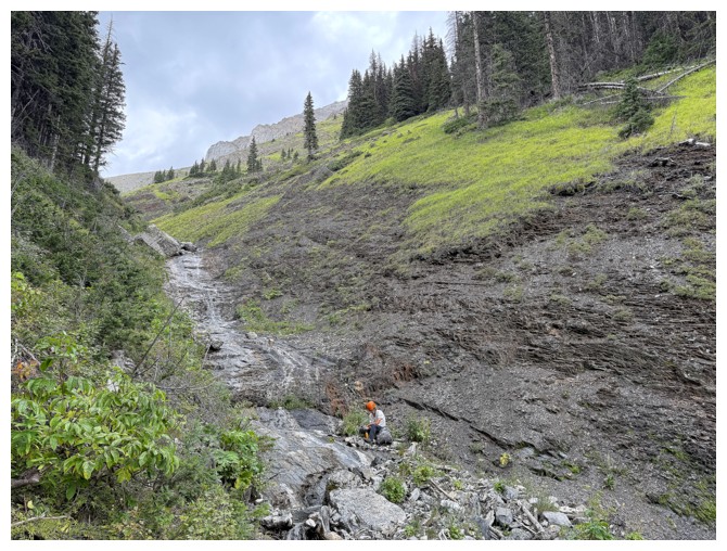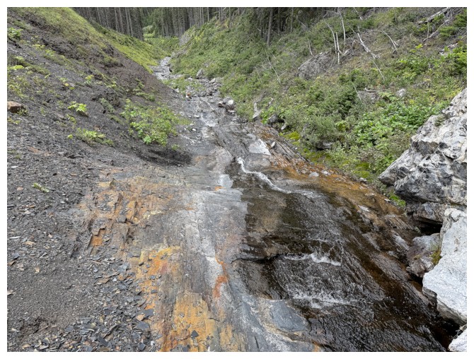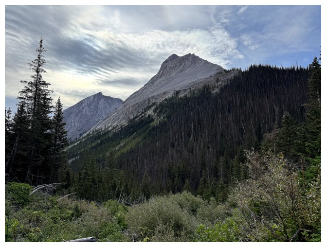 the lower slopes of Three Isle Peak. A short stint of bushwhacking and longer