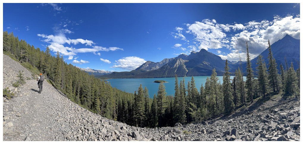 Kananaskis Lake. 3.8 km later, the biking stopped and the hiking