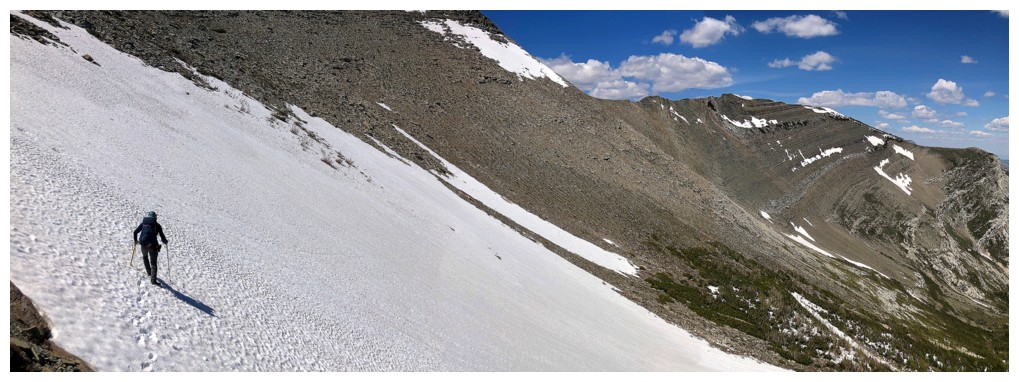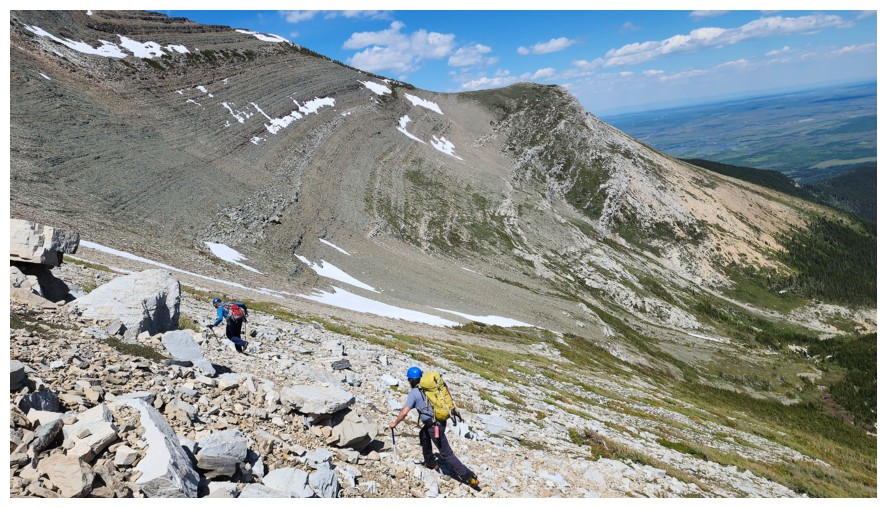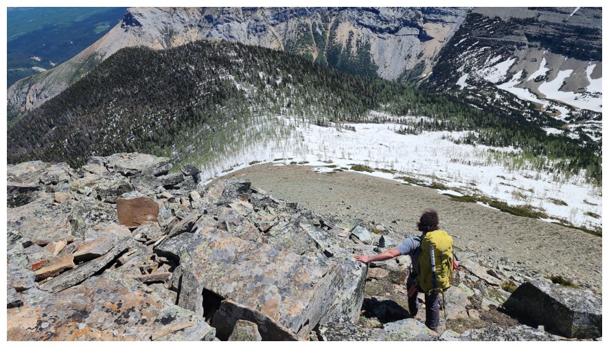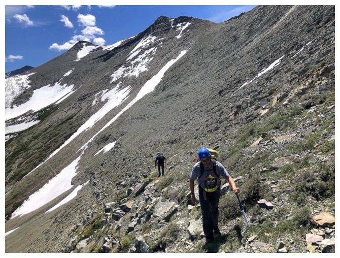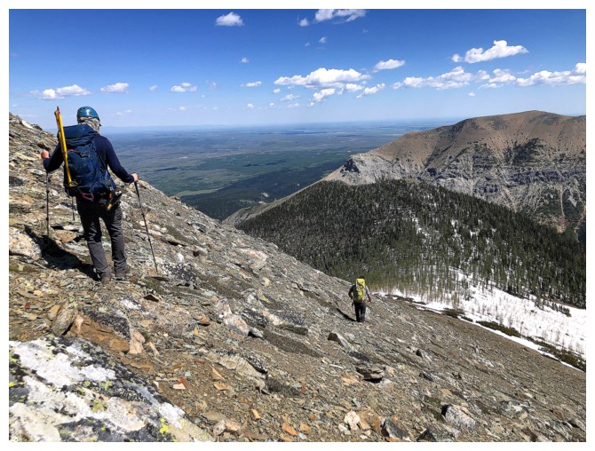 Brad leads the way down, directly from the summit (photo by Dave)