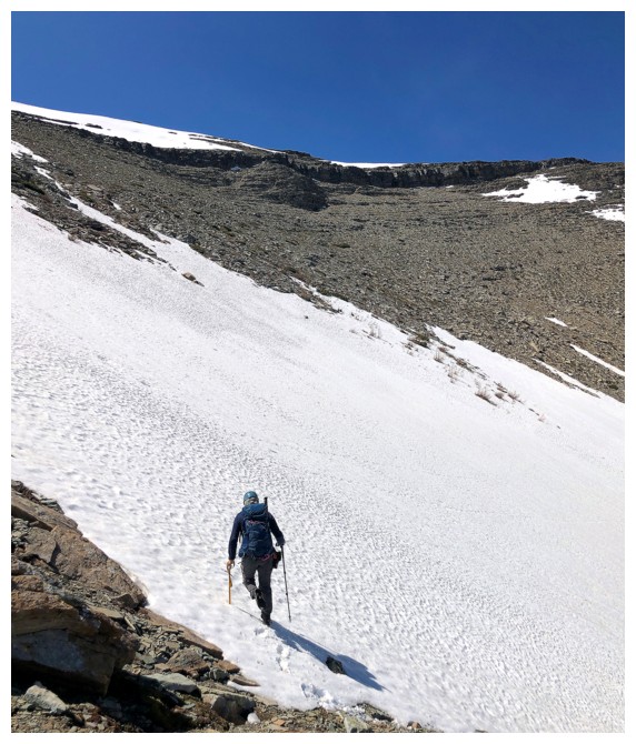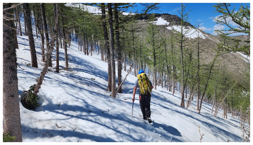 axes were a necessity here. The angle may not look that steep, but a slip could have had serious consequences (photo by Dave).