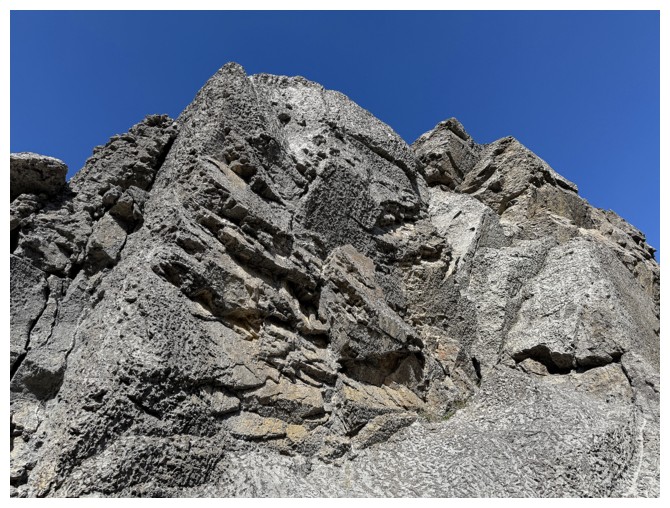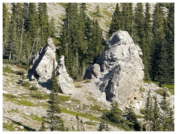 Close-up of a distant and interesting group of pinnacles