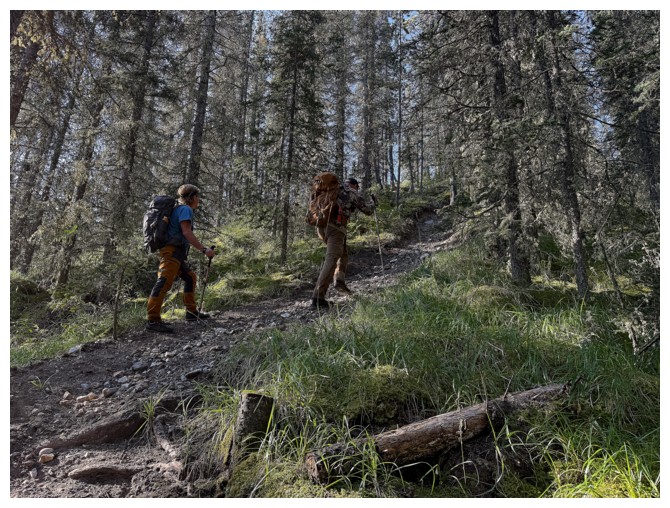 Doug and Brian appear to be wading through thick foliage but they are on a nice trail