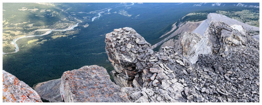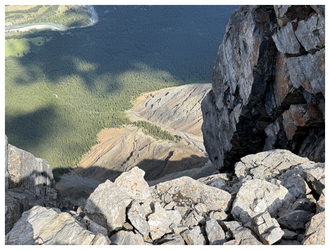 Another glance down the precipitous east face, with the river (photo by Doug)